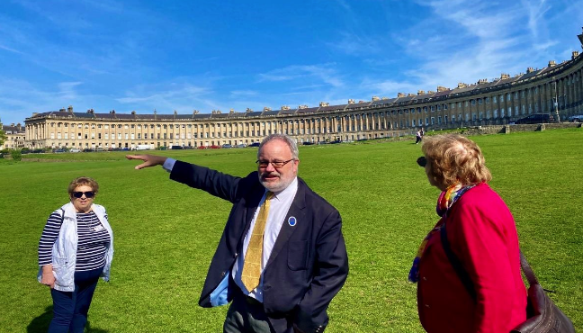 Photo caption: Members of the societies at famous Royal Crescent in Bath