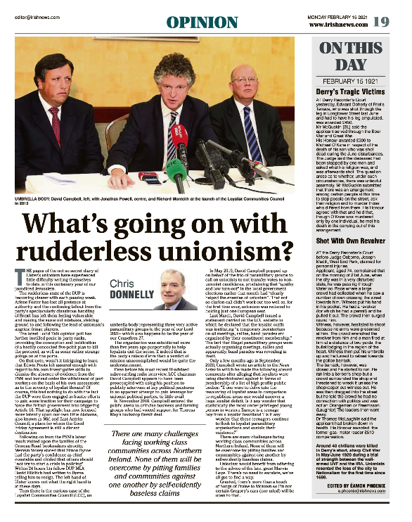 Summary: On This Day – 15th February 1921, Derry courts awarded compensation to civilians maimed or killed during the city’s violent disturbances, exposing sectarian targeting and the long-term human cost of the 1920–21 unrest. Edited by Éamon Phoenix.