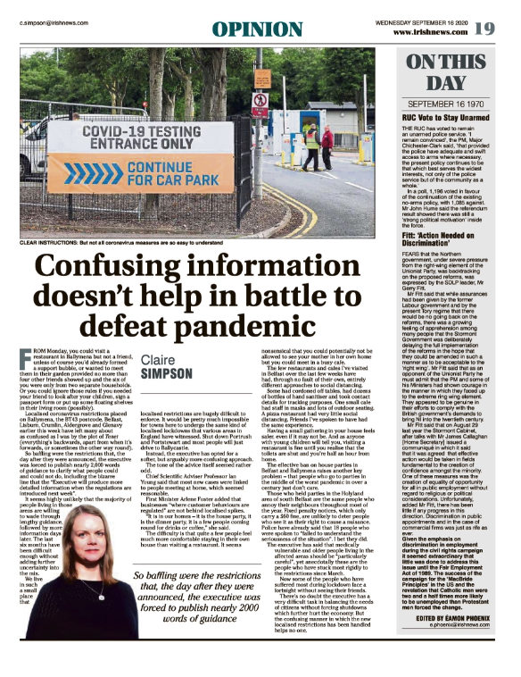 [Dr Phoenix notes: Given the emphasis on discrimination during the civil rights campaign it seemed extraordinary that little was done to address this issue until the Fair Employment Act of 1989.