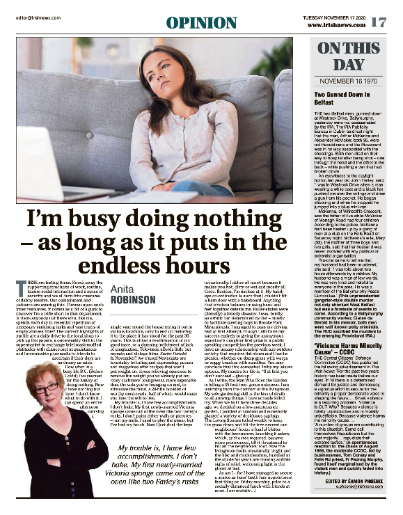 Thumbnail of PDF of Irish News page containing the Eamon Phoenix On This Day column dated 17.11.2020, detailing events reported on 17.11.1920