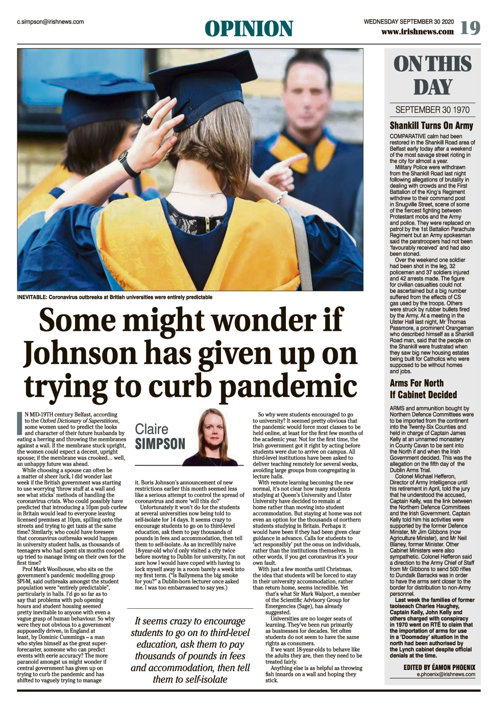 Summary: On This Day – 30th September 1970, violence erupted on Belfast’s Shankill Road as fierce rioting broke out between Protestant crowds and the Army. Allegations of brutality forced the withdrawal of the King’s Regiment, replaced by paratroopers. Edited by historian Dr Éamon Phoenix.