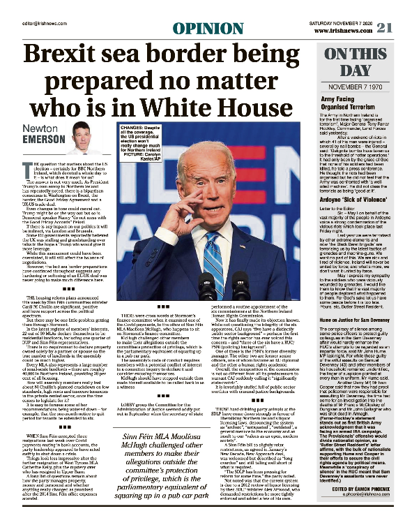 Thumbnail of PDF of the On This Day - 7th November 1970 column by Eamon Phoenix, published in the Irish News on 7th November 2020