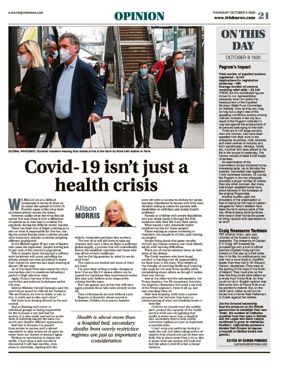 Summary: On This Day – 8th October 1920, the Belfast pogrom’s impact was laid bare as thousands of expelled workers sought relief, while Captain C. C. Craig rallied shipyard men. Edited by historian Dr Éamon Phoenix.