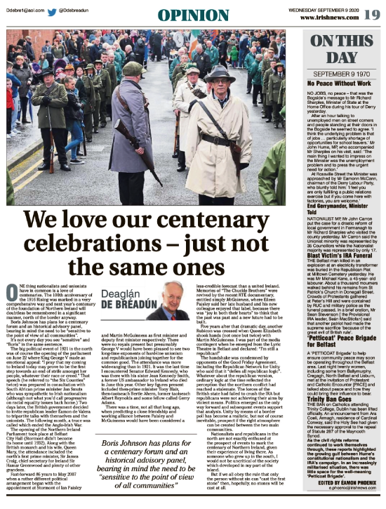 On This Day is a daily column in the Irish News looking back either 50 or 100 years. The column was compiled by Dr Éamon Phoenix from the mid 1980s until autumn, 2022. The Foundation is very grateful to the Irish News for giving permission to reproduce Eamon’s columns. Funding gratefully received from Ireland’s Department of Foreign Affairs and the Magill Trust.